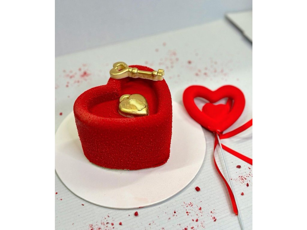 Pěnový bento dort (malý dortík) srdce pistácie-maliny.
