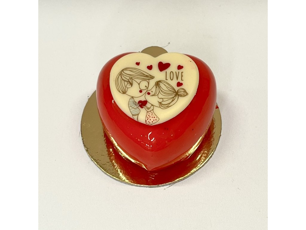 Pěnový zákusek maliny-marakuja ve tvaru srdce